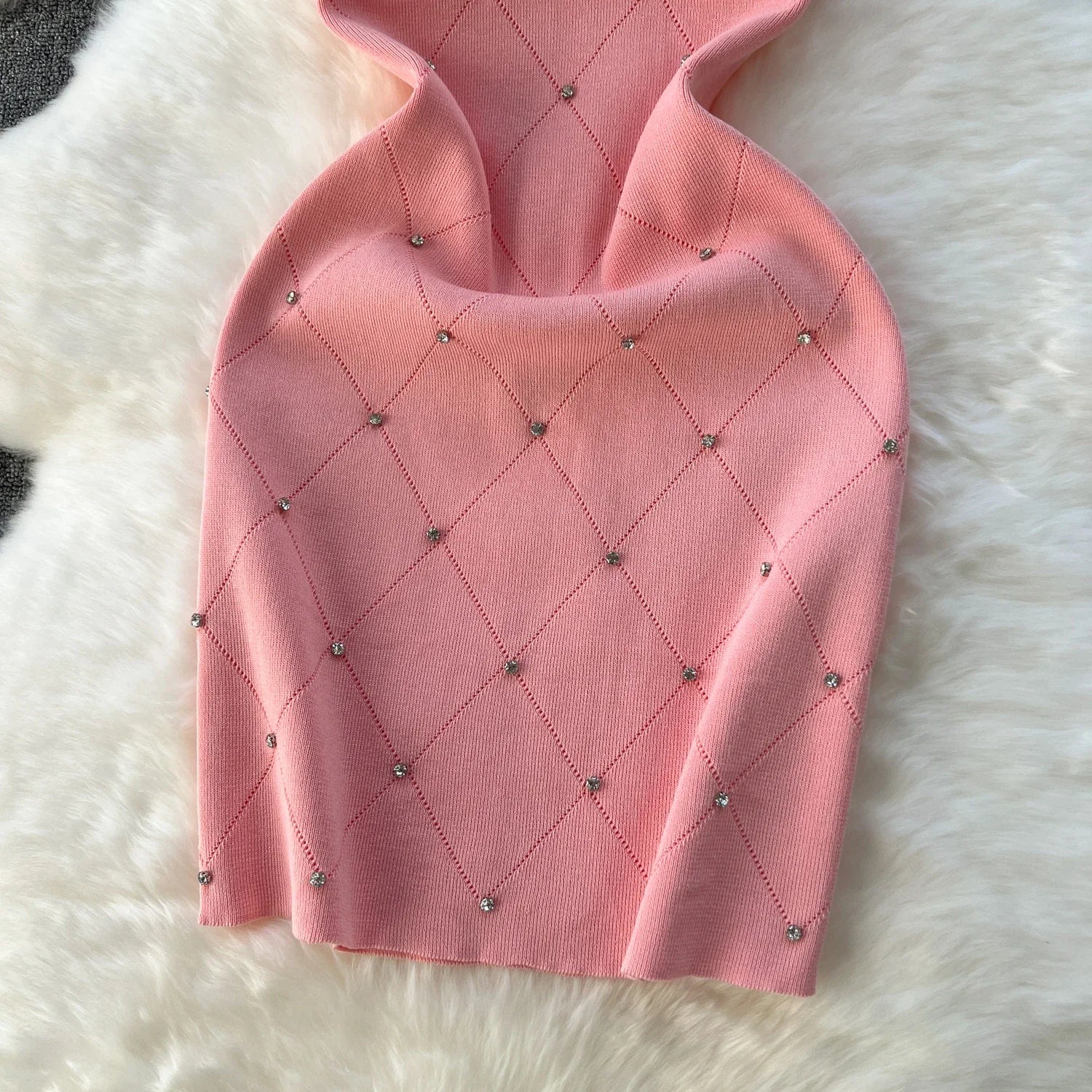 Get ready for any season with this stylish Beading Women's Knitting Sheath Tank Dress! This Female Bodycon Knitted Camisole features a flattering fit and chic details. The Sleeveless Mini Dresses For Woman is the perfect base for trendy Outfits.