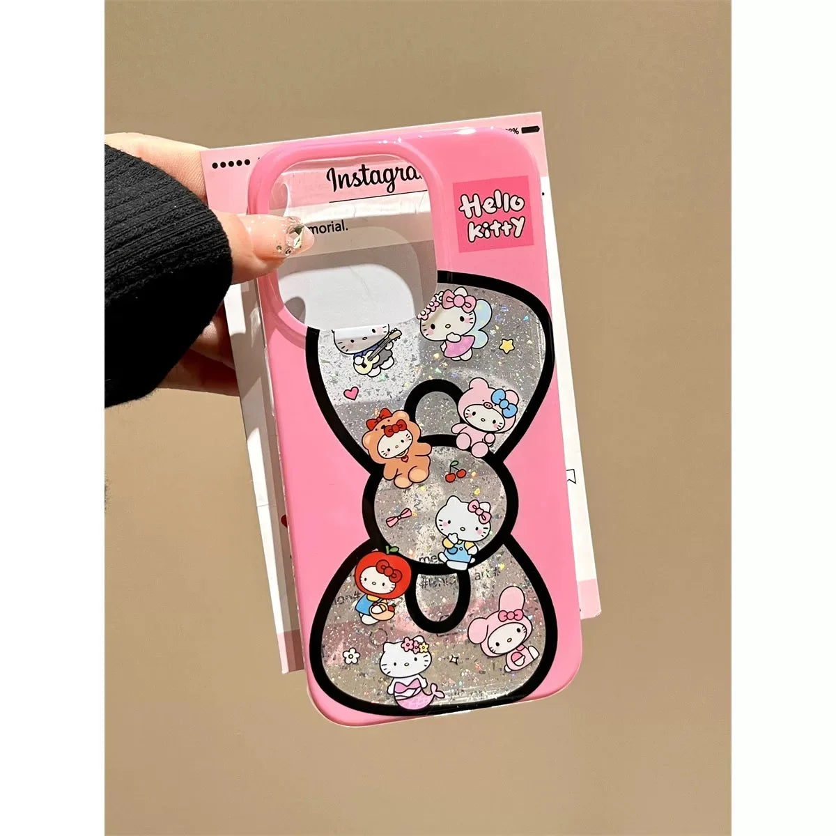 Embrace the Y2K aesthetic with this dazzling, Full Screen Sparkly Hello Kitty Angel phone case! Featuring a Big Pink Bow and all-over Glitter , this Lovely cover is available for iPhone 11, 12, 13, 14, 15, 16 Pro Max, 7, 8 Plus, and Mini . Add a touch of cute nostalgia to your device!