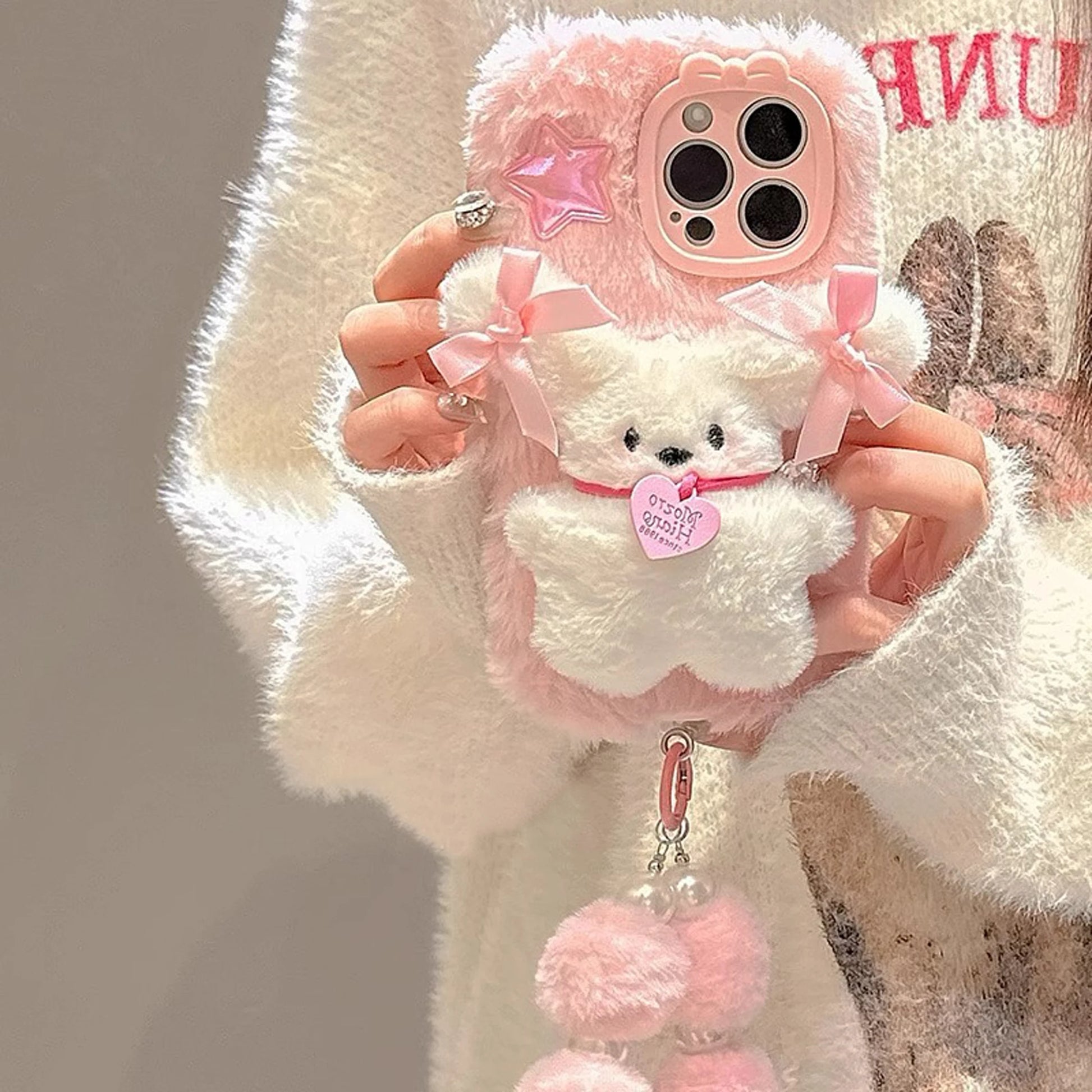 Carry your phone in adorable style with this Pink Plush 3D Doll Case! This soft, cute Cell Phone Accessories includes a convenient Chain for easy carrying. It's the perfect statement piece for iPhone 16, 15, 14, 13, 12, and 11 Pro Max.