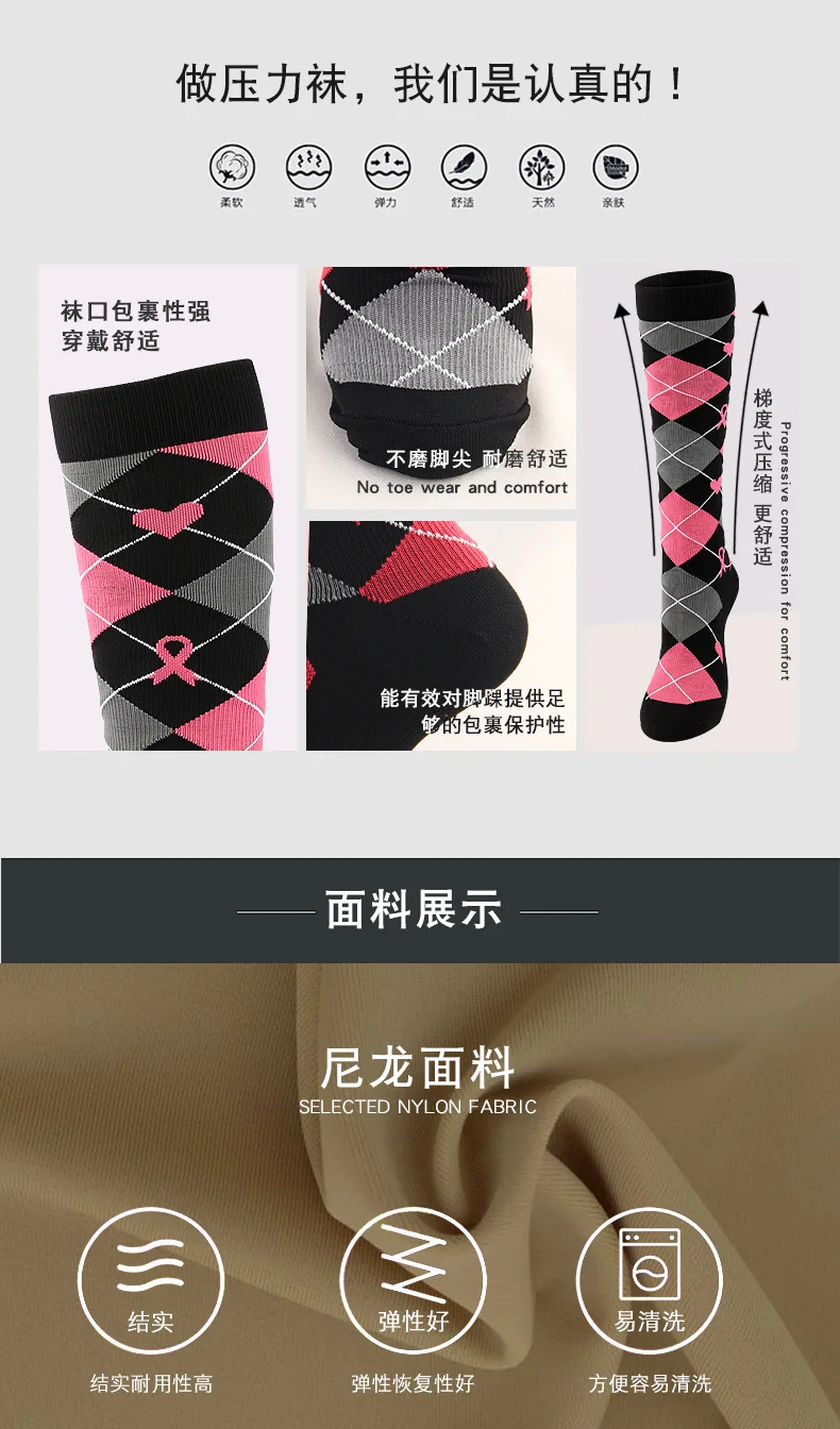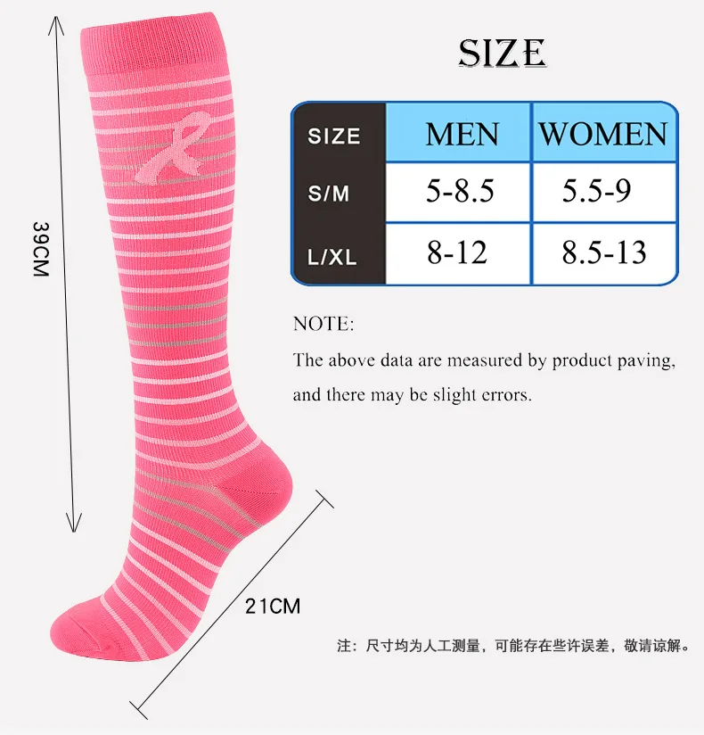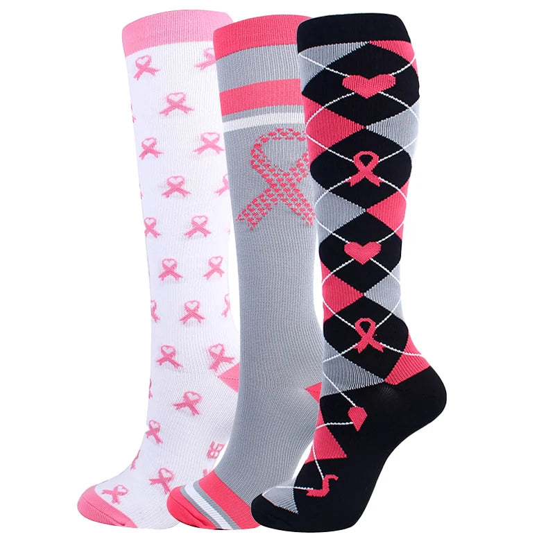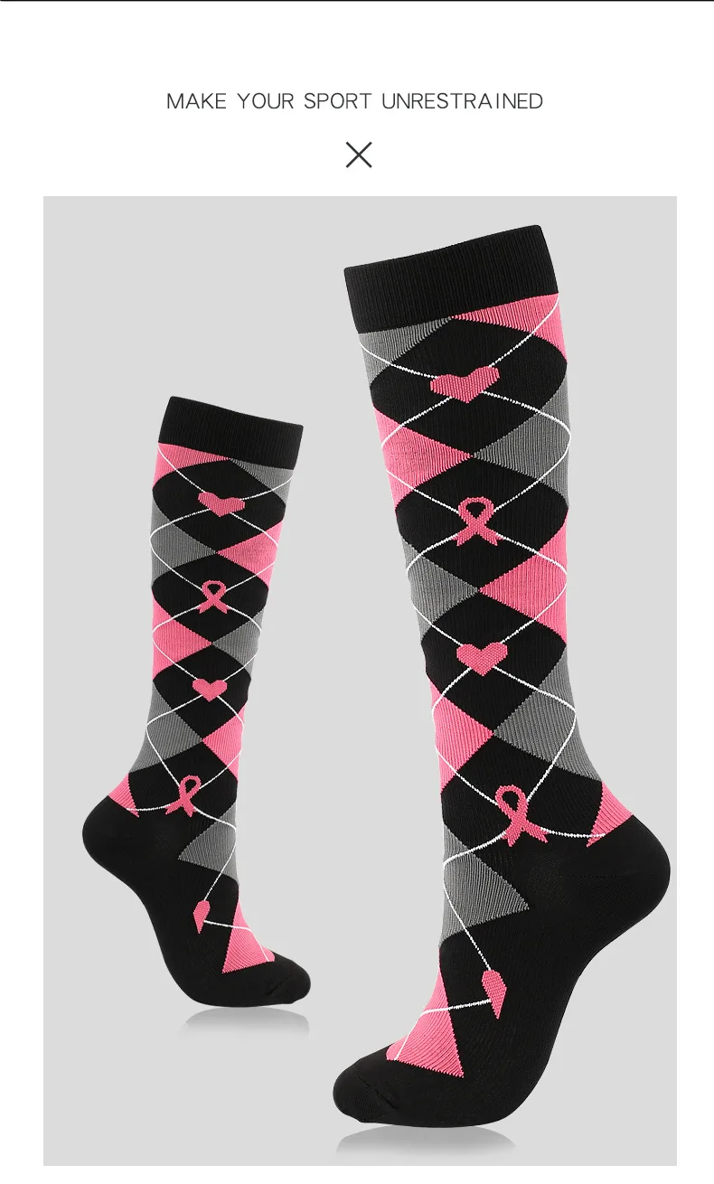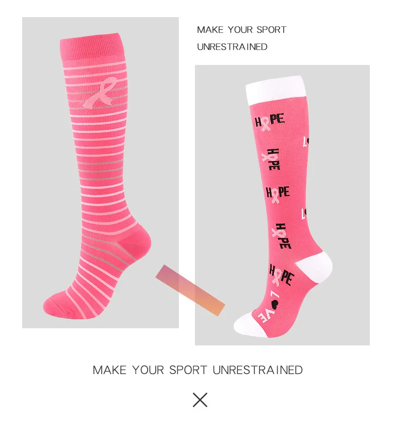 Unisex Compression Stockings Pink Ribbon Pressure Socks Compress Socks Sports Running Fit For Edema Marathon Socks jit